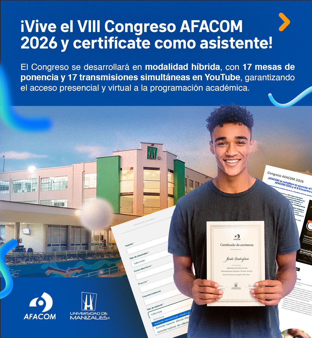La Universidad de Manizales, en alianza con la Regional Eje Cafetero de AFACOM, avanza en la organización del VIII Congreso Nacional e Internacional de Comunicación y el X Encuentro de Semilleros de Investigación, que se celebrarán los días 18, 19 y 20 de marzo de 2026, en modalidad híbrida.