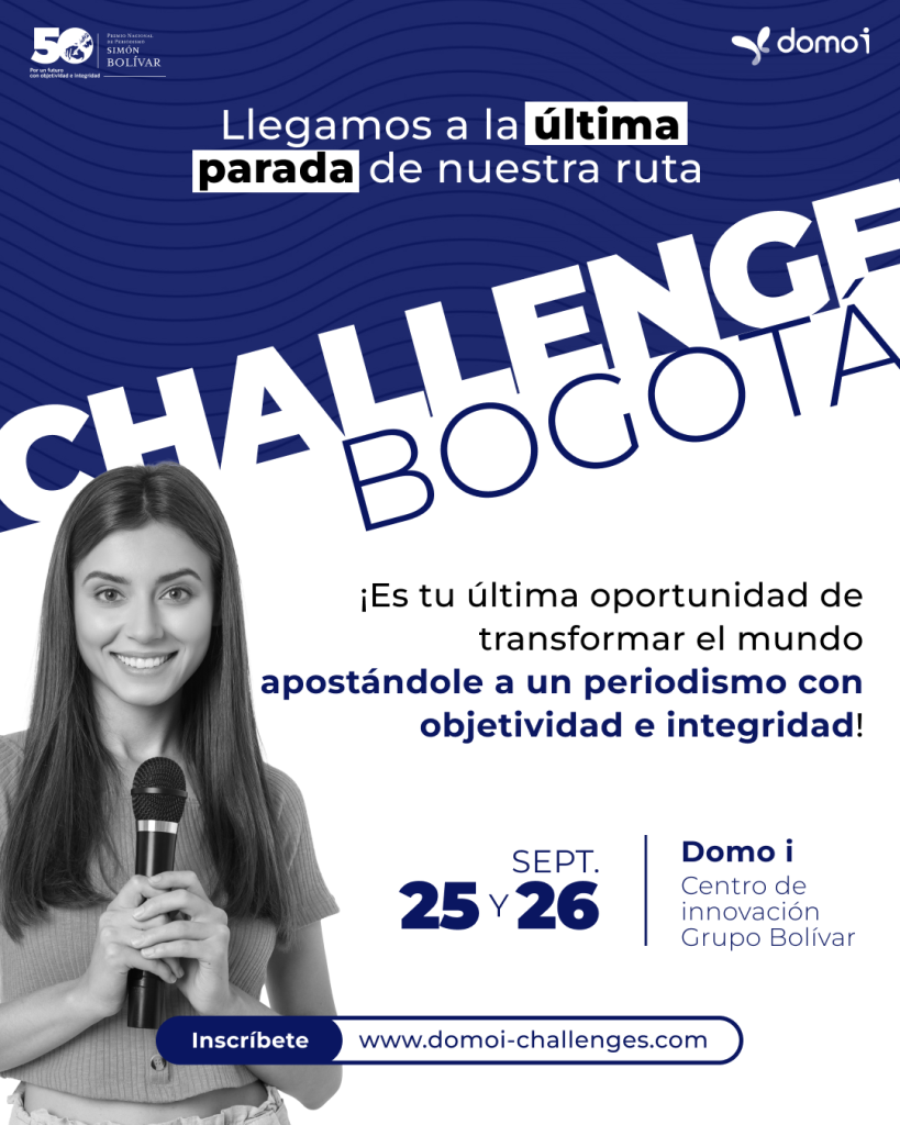 El Premio Nacional de Periodismo Simón Bolívar cumple 50 años reconociendo la excelencia periodística en Colombia. En el marco de esta celebración, y con el apoyo de AFACOM, se lanza el Challenge Bogotá: una convocatoria dirigida a estudiantes de Comunicación Social, Periodismo y carreras afines que busca responder a los grandes desafíos del periodismo contemporáneo.