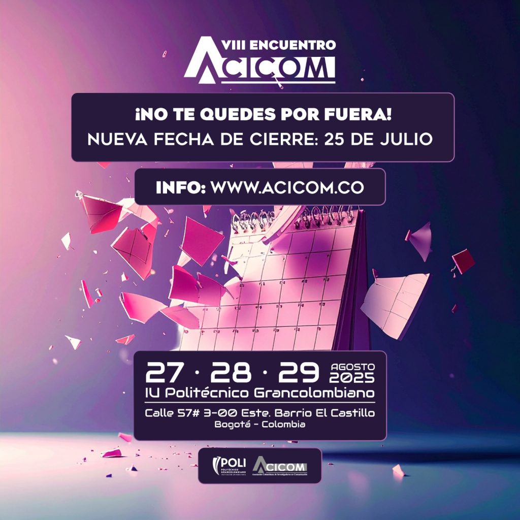 La Asociación Colombiana de Investigadores en Comunicación, ACICOM, en alianza con la Institución Universitaria Politécnico Grancolombiano, presenta el VIII Encuentro Nacional ‘Temblores en la Comunicación: investigación, enseñanza, creación y ejercicio profesional en tiempos de la IA’.